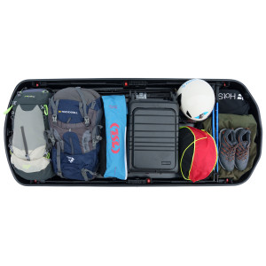 Le mécanisme d’ouverture comprend des leviers brevetés garantis à vie, assurant un fonctionnement fluide et sans effort du coffre de toit.