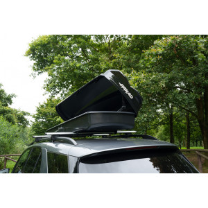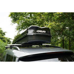 Le coffre de toit Farad Raya 480L a été conçu avec un style moderne et des lignes aérodynamiques pour s'intégrer parfaitement au profil de votre véhicule, garantissant des performances optimales et un look élégant.