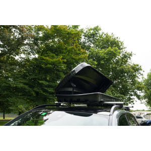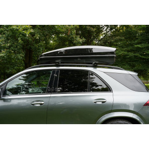 Le coffre de toit Farad Raya 480L est compatible avec toutes les barres transversales jusqu’à 8,5 cm de largeur.